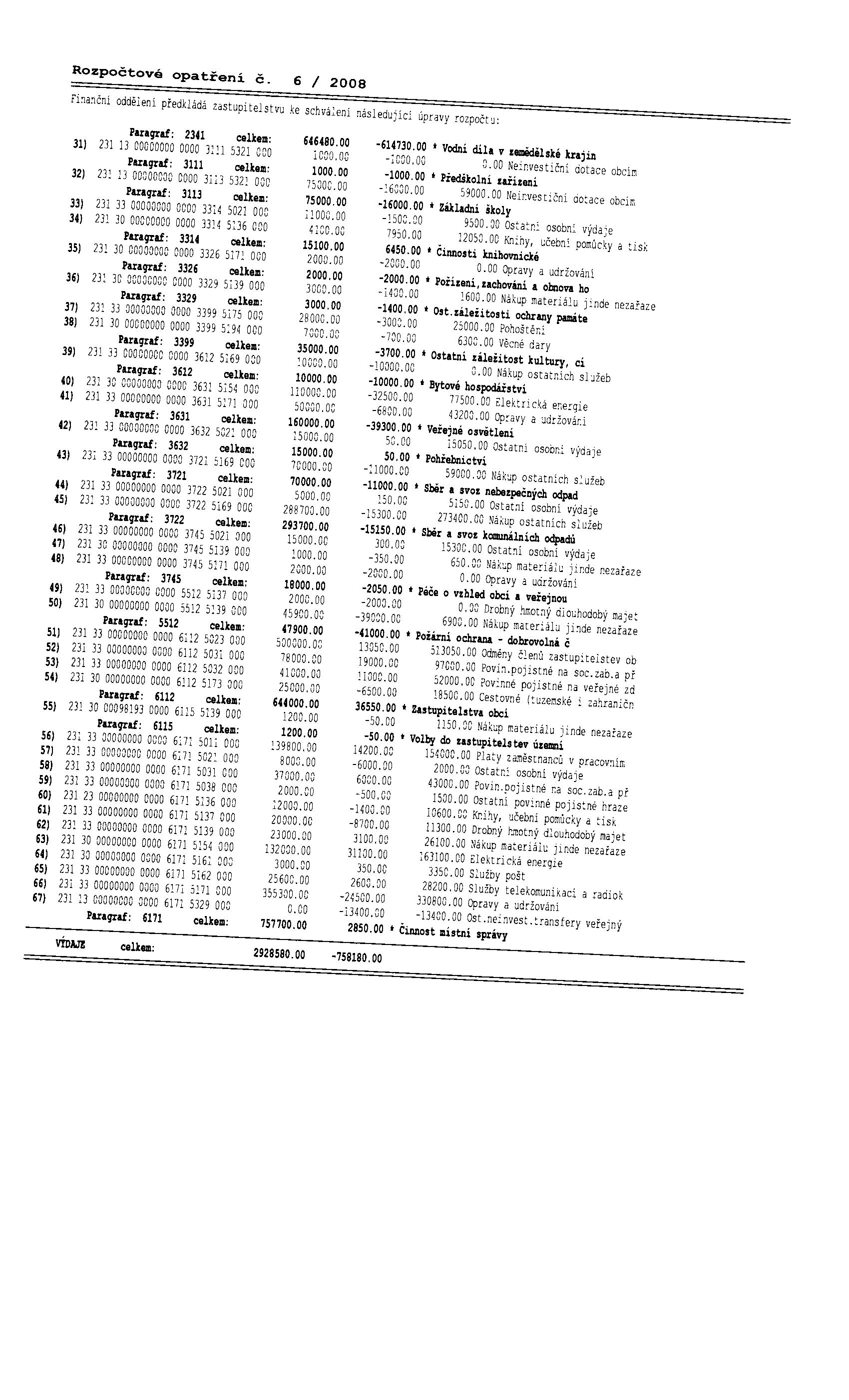 rozpočtové opatření