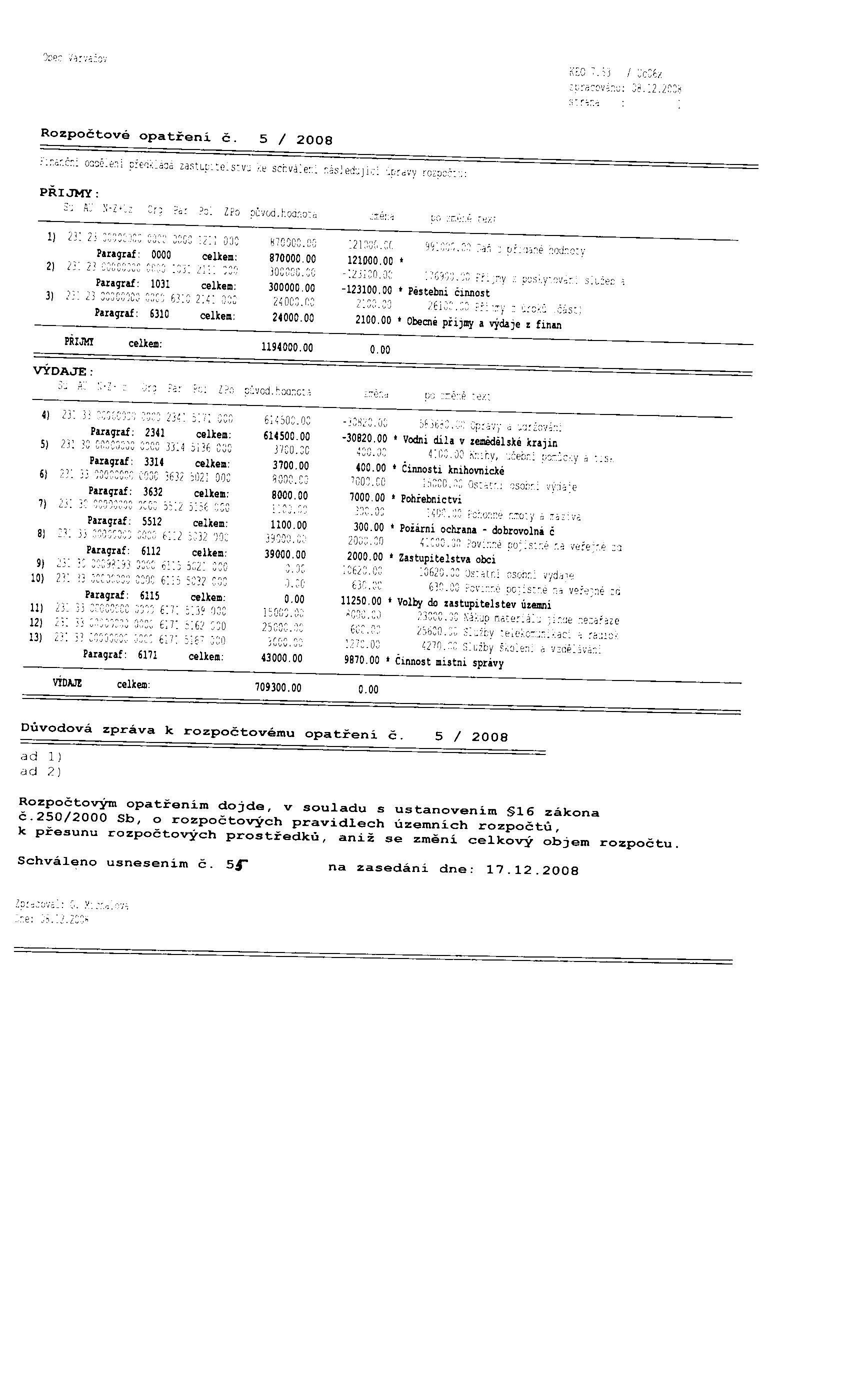 rozpočet obce 2009